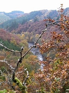 We wandelen verder, aan de andere kant van de kam naar beneden, tussen de bomen langs de rivier. Het bospad slingert bijna parkachtig langs het fris stromende water. Het is hier anders dan in het zomerrijk van mijn schoonmoeder, maar niet minder mooi. Bijzonder genoeg om de melancholie achter te laten tussen de herfstbladeren. Not fare well, but fare forward, voyagers.