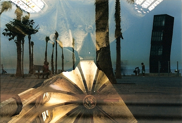 Eenmaal ontwikkeld bleek mijn experiment mislukt: een andere foto was over het beeld geschoven. De ranke pilaren wezen nu behalve naar het dak van de basiliek ook naar de zee langs het strand van Barceloneta. Een vingerwijzing van de Vrouwe der Zee? En wat wilde ze me dan zeggen?