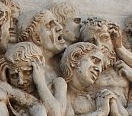 Maar het blijft niet bij een menigte stemmen: de beelden komen tot leven en sluipen langs de muren, over de bogen en op de friezen: