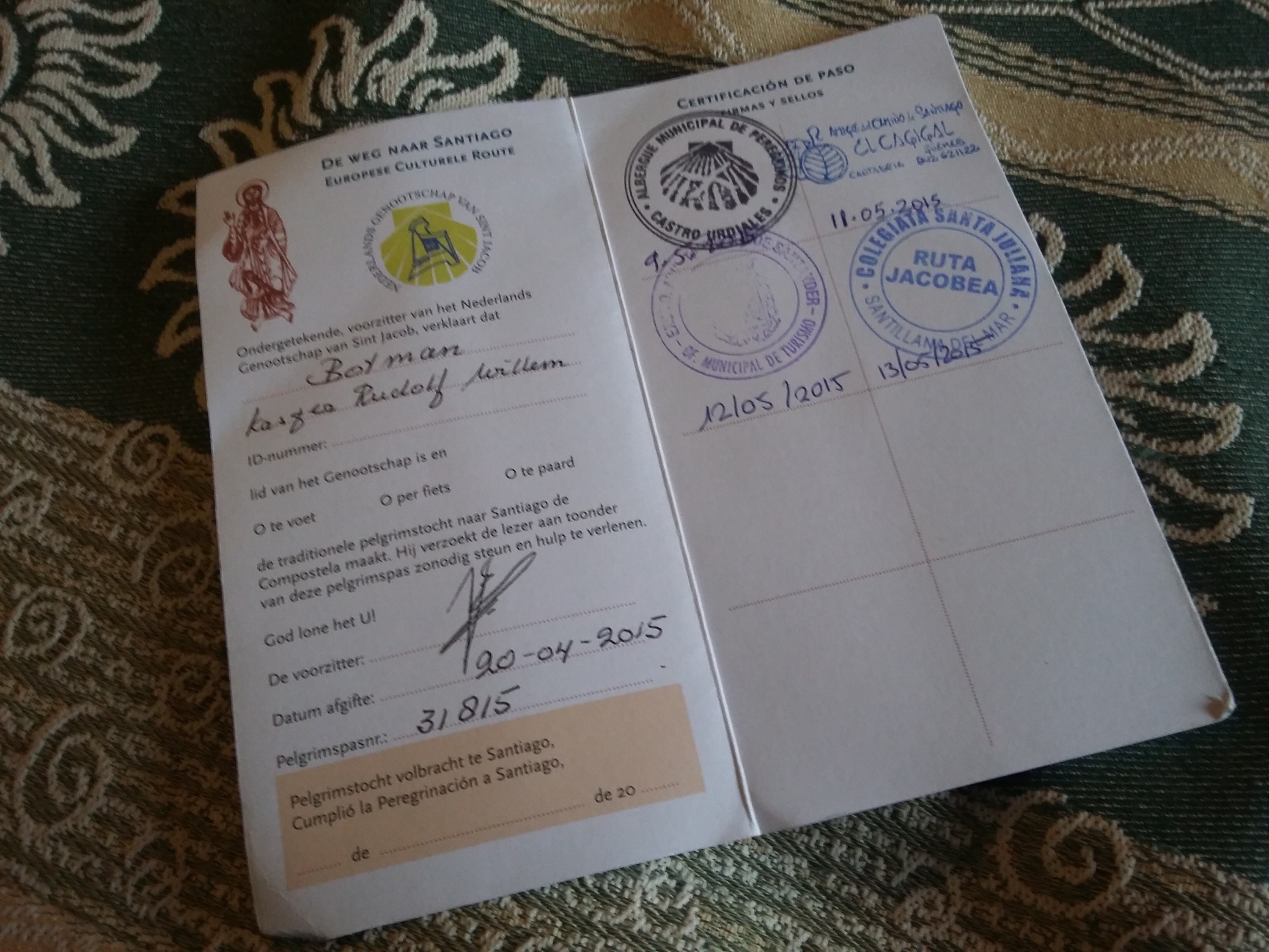 En dan ga ik op zoek naar een stempel. Op elke etappe, meestal in elke albergue, ontvang je zo’n sello, als bewijsje. In deze albergue niet, dus loop ik naar de kathedraal en wordt spontaan uitgenodigd op een rondleiding door de toren. De Santanderos zijn trots op hun kathedraal: logisch als de stad weggebombardeerd is en de herbouwde kathedraal bijna het enige dat historisch is. “Normaal is er een wachtlijst, je hebt geluk!”, vertelt de rondleidster me in gebrekkig Engels. Alleen al om haar vriendelijkheid ga ik mee, al zitten er alleen maar woorden Spaans bij.