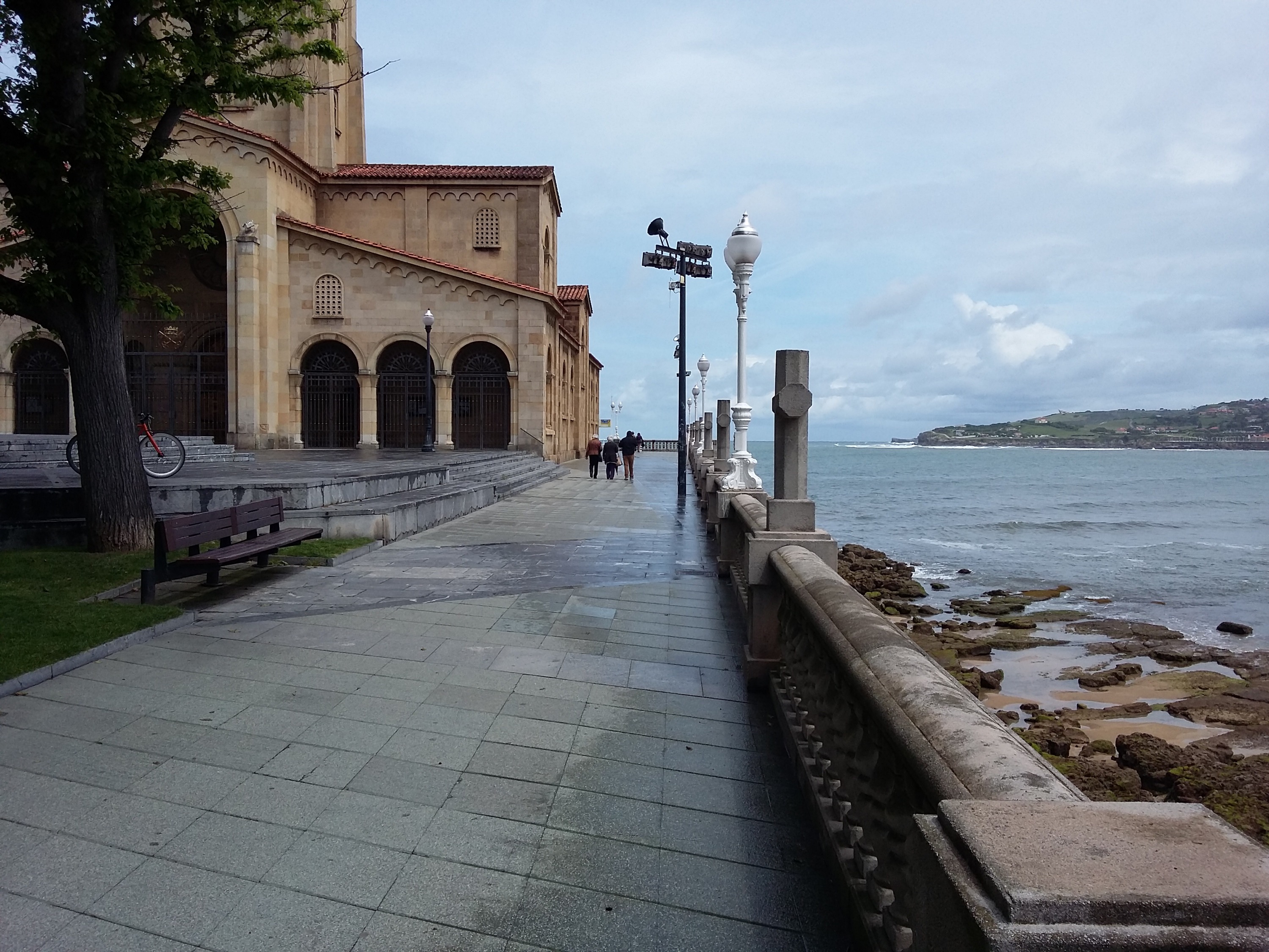 Gijon is een oude stad, met een brede baai waar vandaag de golven metershoog naar binnen rolden. Ik kan niet zeggen dat ik Gijon mooi vind, maar het heeft wel iets mooi rauws en puurs. Ook hier weer veel verval; ik krijg niet de indruk dat Gijon een heel gelukkige of bruisende stad is. In Lissabon voelde je meer energie, net als in Bilbao; in Gijon is denk ik meer berusting. Dat neemt niet weg dat de oude visserswijk Cimadevilla met zijn bont gekleurde gebouwen en hippe bars indruk maakt, net als het strand, de oude kerken en de beeldende kunst. Fijn om hier te zijn!
