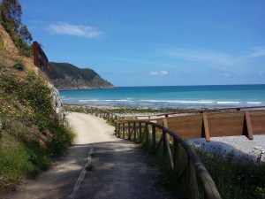 Wat is het fijn om samen te lopen! En op ons lag vandaag een droomstrand te wachten , de Concha de Artedo: een kleine baai, bereikbaar via een prachtig natuurgebied, met een mooie loopbrug, een kiezelstrand en ongelofelijk blauw water. Mijn wandeltempo is ook drastisch omlaag gegaan, en dat geeft me het gevoel nu echt te ontspannen. Jana doet het supergoed, de route gaat op en neer, en als we aankomen zijn we moe, maar voldaan. In Soto wacht er een bier, een slaapzaal, een pizza en een nacht vol geluiden.