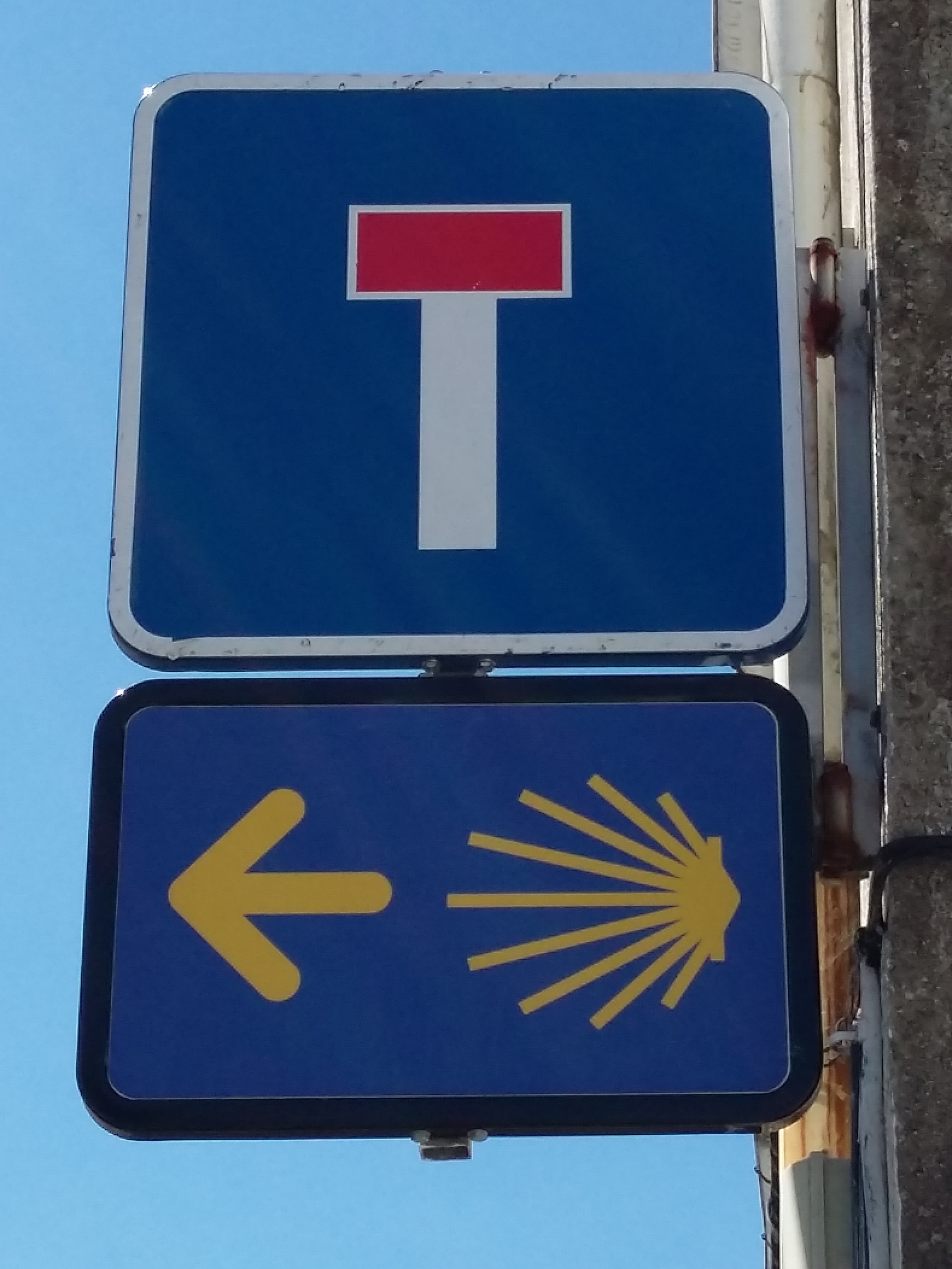 Er daalt rust over onze weg: we komen minder mensen, en sowieso minder peregrino’s tegen. De markeringen geven inmiddels behalve de mooie gele schelp tegen een blauwe achtergrond ook het aantal kilometers tot Santiago aan. Eenmaal in Vilalba staat die teller op 121 km. Jana heeft er inmiddels zo’n 160 km op zitten, ik zit aan de 410 km. We komen in de buurt!