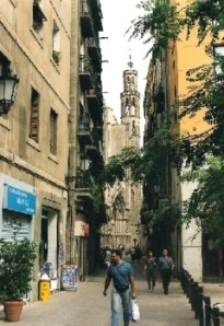 Vanaf de Ramblas wandelen we via de Carrer de la Portefarrissa de Barri Gotic in. De drukte kleeft aan de gelige muren, de warmte hangt als klamme was boven onze hoofden. Rondom de Catedral de la Seu staan de toeristen, rijen dik, te popelen om te betalen voor hun persoonlijke portie duisternis. Onze portie komt later wel, in de kroegen: we besluiten naar de Barceloneta te lopen, op zoek naar het echte Barcelona.