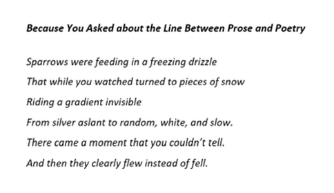 Nemerov, Howard.‘Because You Asked about the Line Between Prose and Poetry’, from Sentences, Chicago: University of Chicago Press, 1980